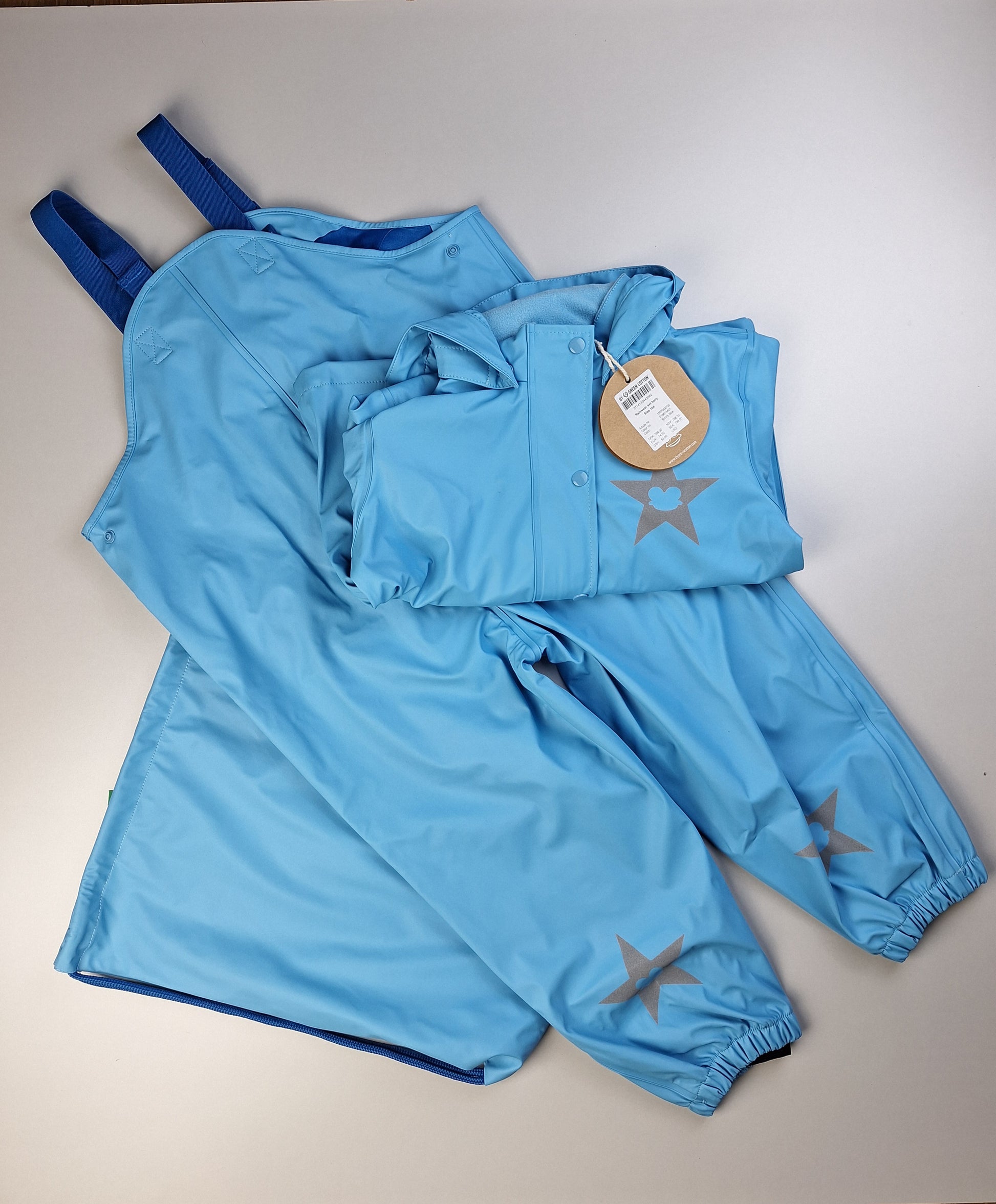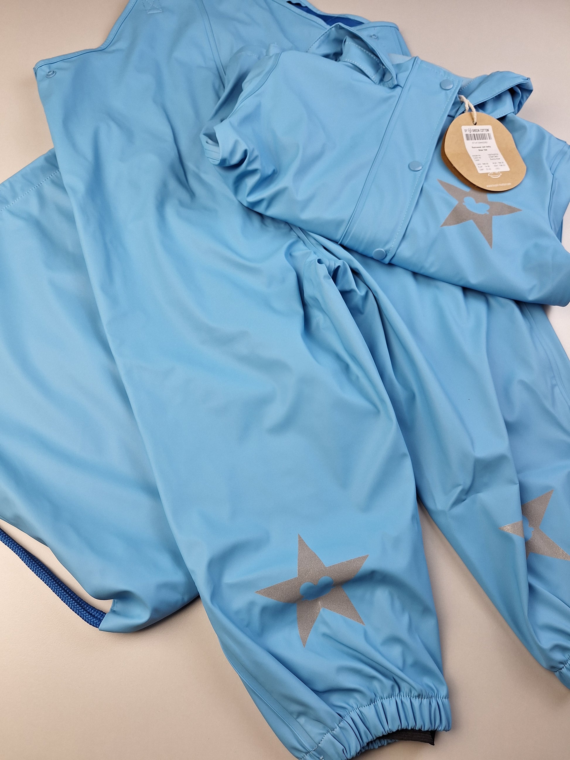 Světle modrá souprava do deště - kalhoty, bunda, vak